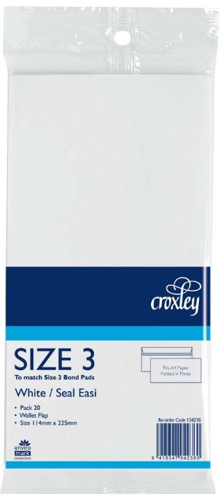 CROXLEY ENVELOPE BOND 114X22mm SIZE 3 SEAL EASI